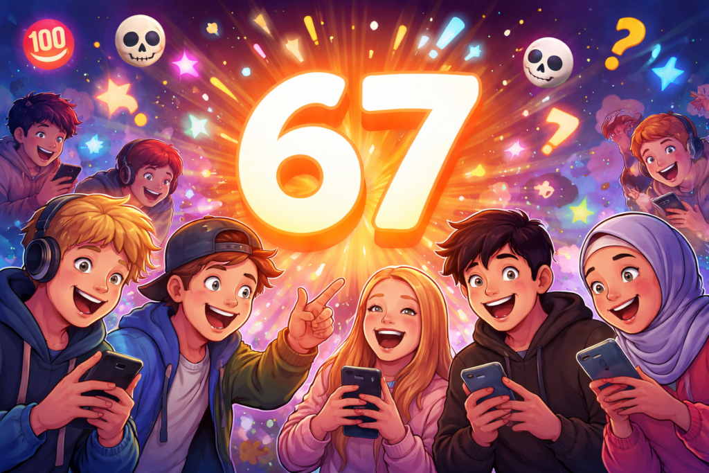 “67 meme” viittaa sisältöön, jossa numeroa käytetään osana vitsiä.